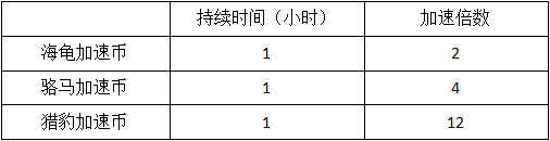 当玩家点击进入商店后,在生产界面的右侧便能瞧见加速选项。点击进入加速币选项,玩家会发现共有3种加速币,即海龟加速币、骆马加速币以及猎豹加速币。