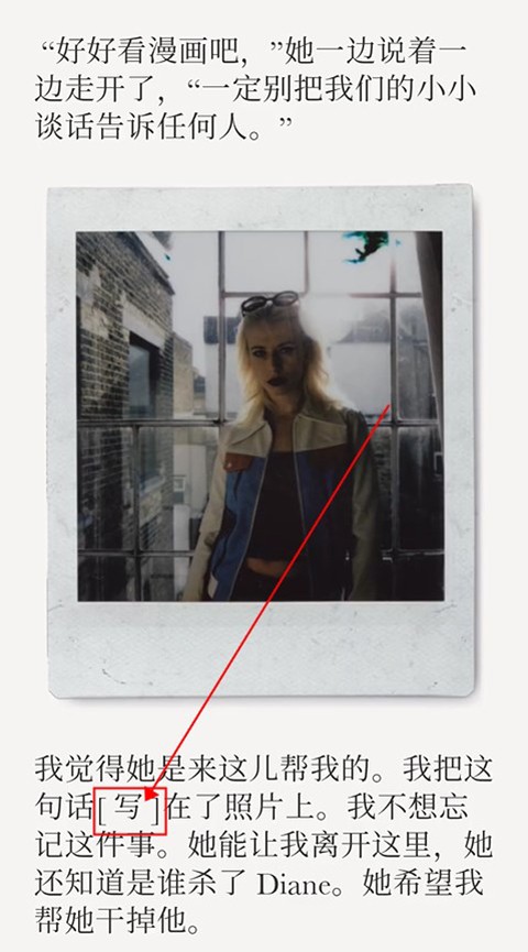 6、完成拍照操作后,点击“写”按钮,即可继续推进剧情。