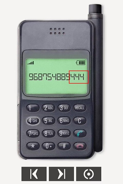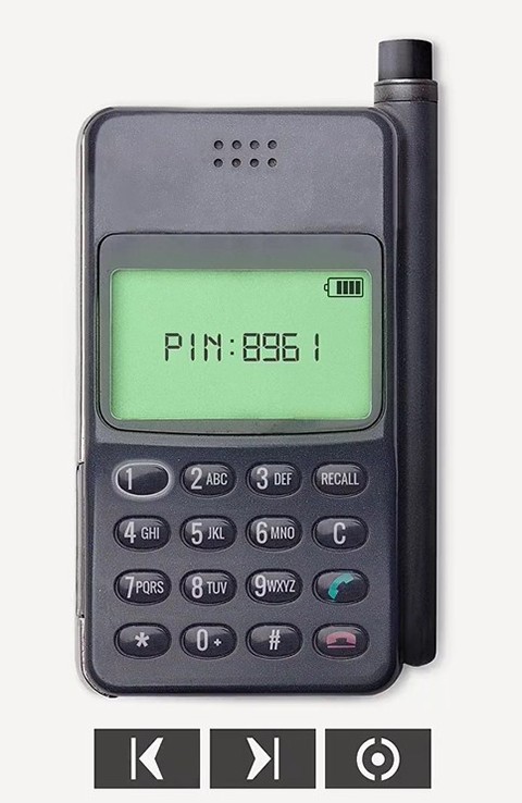 找到手机,在屏幕上输入密码8961以解锁手机(通过左右箭头按钮可控制按键左右位置的切换,第三个按钮是确定按钮。RECALL代表重拨,C表示删除,绿色按钮用于拨打,红色按钮用于挂断)。