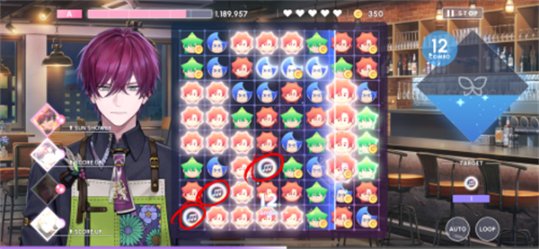连击大音符的产生条件是同时消除6个及6个以上的同色方块。大量生成同色方块对通关关卡更为有利,因此建议在编队时编入同属性卡。另外,若某张卡牌的auto技能为SHOWER,能使属性出现概率提升。