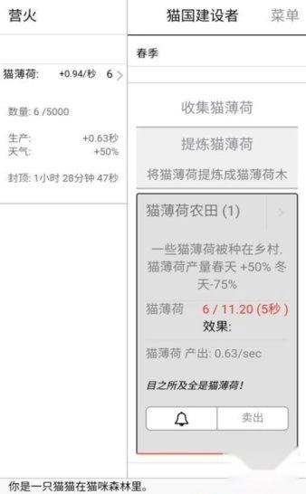 2、猫薄荷田、森林木材这类自然资源,会依据春夏秋冬四季的更迭,展现出不一样的产出成效,进而构建起真实的环境反馈机制。