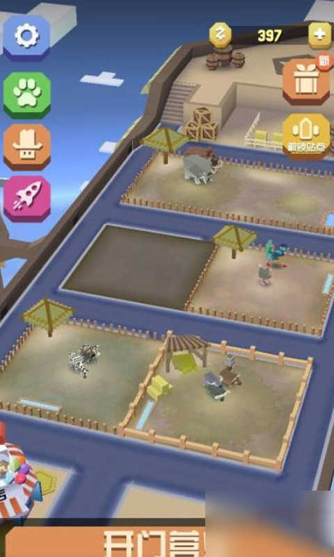 2、打造专属动物园,历经驯养、繁殖过程,做好运营工作,以此吸引游客并赚取金币。