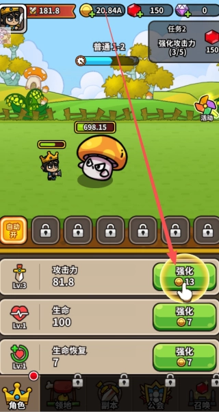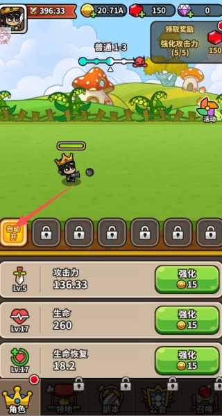 1. 刚进入游戏时,首要任务是开启自动战斗系统。借助此系统,英雄能够自动积累金币与经验。与此同时,玩家可通过实战去熟悉战斗操作以及技能释放的节奏,为后续游戏进程奠定基础。