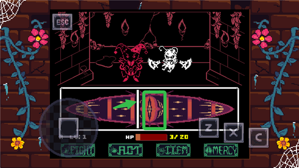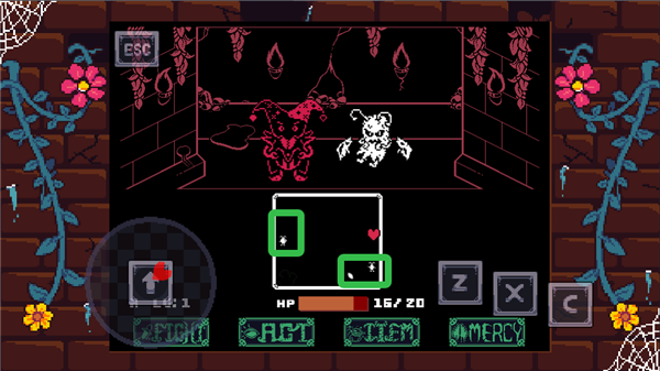 游戏延续了原版的“灵魂操控”战斗模式,然而弹幕不仅密度增大,攻击性也更为强劲。当灵魂边缘触碰弹幕,也就是擦弹时,能少量增加TP值(技能点)。建议通过走位训练来实现精准擦弹,从而为释放强力技能积攒资源。多数怪物不能用传统的“SPARE”饶恕方式,而是要借助特定的ACT选项来削弱它们的战意。比如,在与Papyrus战斗时,选择“夸赞其骨头”,就能降低其攻击频率。
