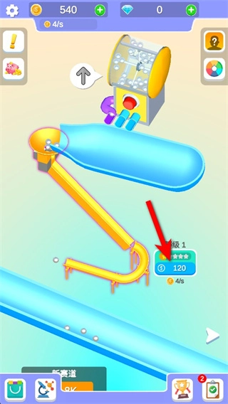 3、只需轻轻点击几下,就能对赛道或小球进行升级,还能体验到持续提升带来的成就感。