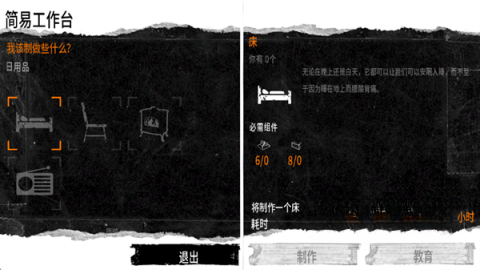 制作各类生存必需品,像武器、饮料、床铺以及火炉等等。