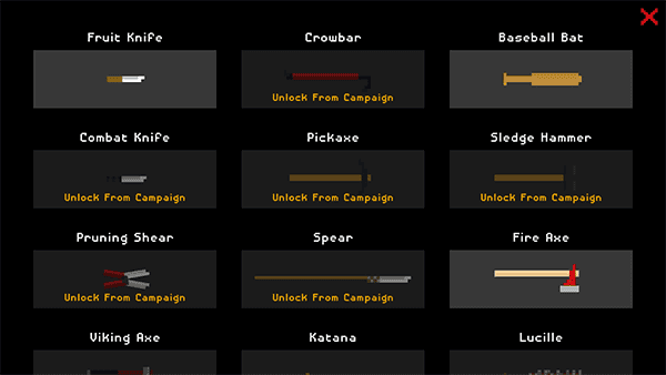 游戏里还配备了形形色色的武器,像棒球棍、斧头、锤子、日本剑、电锯以及光剑等等,让游戏变得更为有趣且刺激。