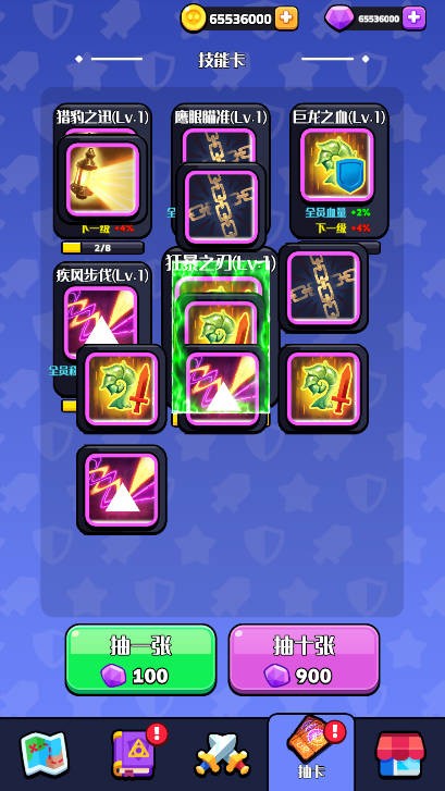 抽卡系统:游戏内设有多样的抽卡玩法,玩家能够获取强力卡片,借助合成与升级来增强战斗能力。每张卡片都有可能在战斗中发挥关键作用,通过持续收集和优化配置,助力提升团队的整体实力。