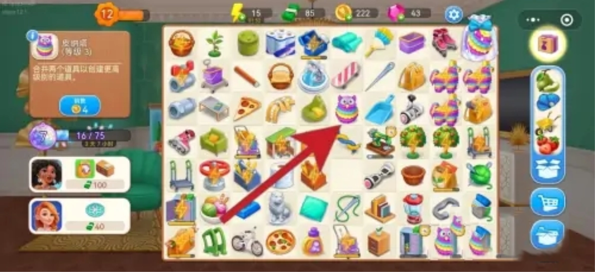 在四级锁柜处点击获取工具后,即可着手合成皮纳塔,合成顺序为一级皮纳塔逐步升级至二级、三级,最终到四级皮纳塔,从四级皮纳塔开始会产出糖果类道具。