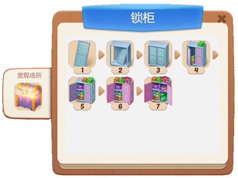 珍奇宝箱可产出合成锁柜生成器,借助该生成器能按如下顺序合成锁柜:一级锁柜逐步升级为二级锁柜,接着是三级锁柜,再到四级锁柜(四级锁柜具备生产运输工具、缝纫机以及皮纳塔工具的功能),后续等级以此类推。
