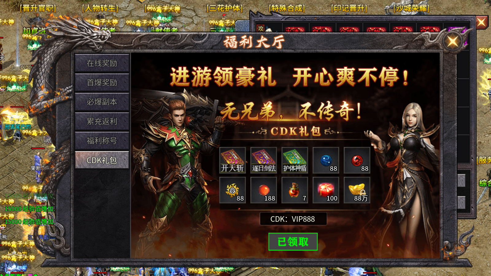 兑换方式:点击游戏界面上方的福利大厅,选择CDK礼包板块,输入对应的礼包码就能完成兑换。