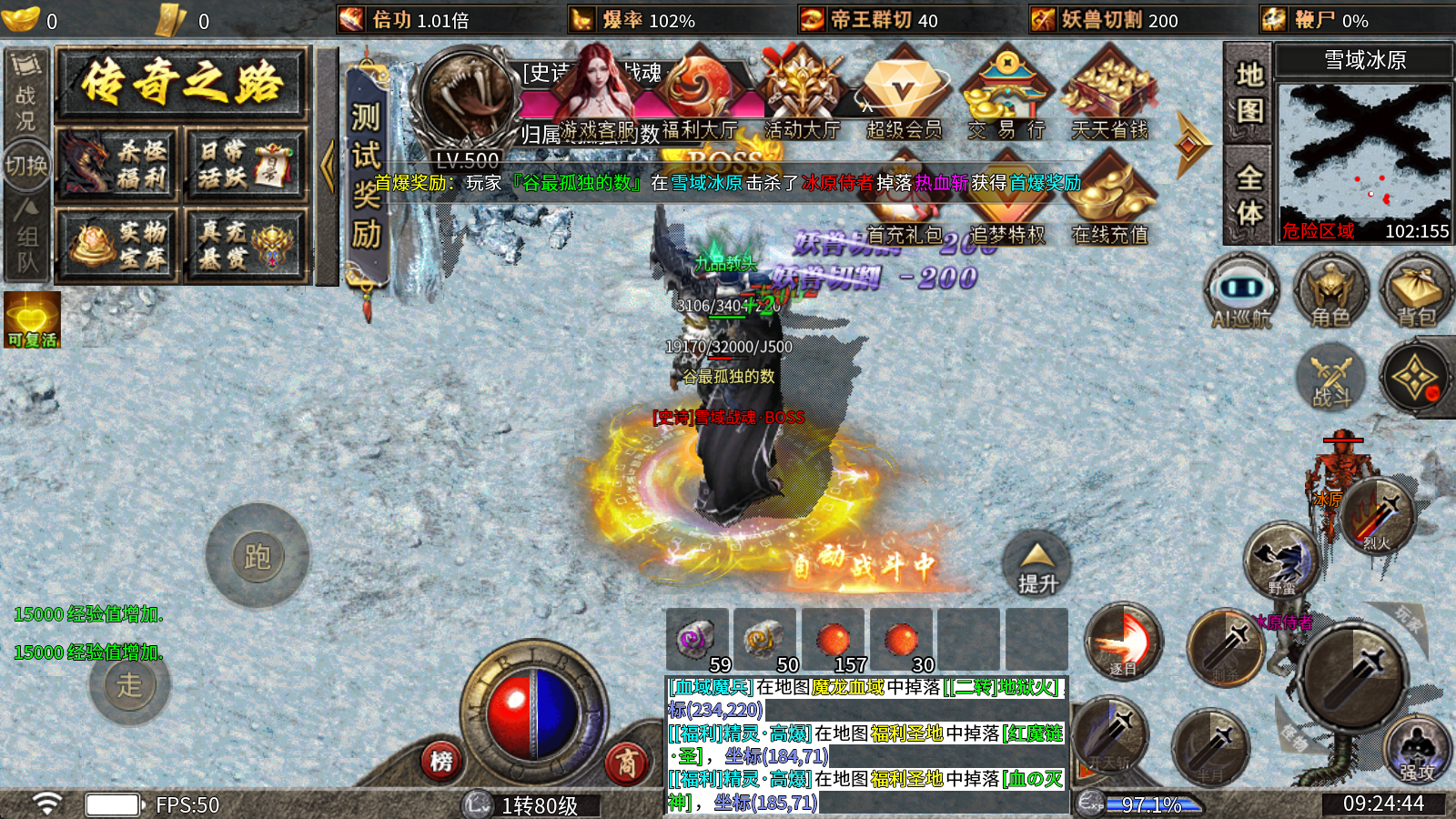 二大陆的小怪就能爆出本服所有顶级装备道具,BOSS还能产出真充灵符,完全靠打就能拿到你想要的一切。