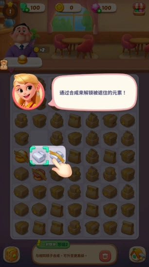 这是一款经典的消除合成类小游戏,你只需找到相同的物品,将它们拖动到一块儿,就能合成更高级的物品啦。