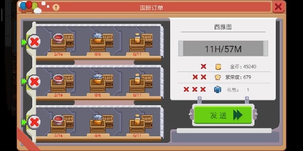 国际订单设有三层奖励机制,完成每一层都能获取对应的奖励,通常第一层是金币,第二层是繁荣度,第三层则为礼包。