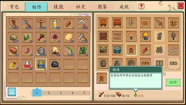 按目前情况,请务必把背包格子多开至少三列。前期建议做一个木箱——只做一个是因为当前版本木箱需要4个钉子,成本实在太高了,甚至比用钻石开格子还贵,有点难顶;但只有一个木箱确实不够放,也只能先将就着用。另外感觉红木的掉率好像和伐木级别有关,级别越高掉率似乎越高,不知道是不是我的错觉。多余的物品可以扔到售卖箱卖掉,比如普通作物如果同时有高品质和低品质的,可以挑量少的那种卖掉,但一般不太建议卖,因为那边的价格实在太低了。不过有些东西是不能卖的,捡了就得留着,像虎斑贝、鲍鱼、人参、还魂草、何首乌、海胆之类的——很多海产(除了鱼类)、药材,还有任务都会用到这些。