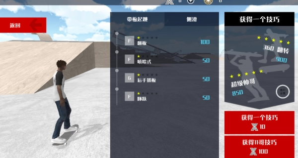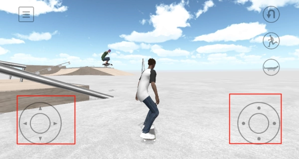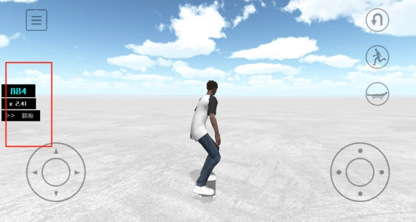 左侧的虚拟摇杆用于操控滑行的方向,右侧的组合按键则能够触发翻转、抓板之类的特技动作。