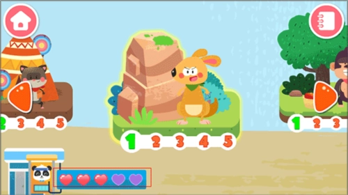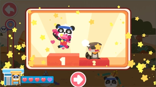 安装好宝宝巴士奇妙运动日这款游戏后,进入游戏界面选择一个动物角色参与比赛。游戏界面左下角的爱心图标代表可游玩的次数。