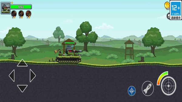 通过虚拟摇杆操控坦克的行进方向,点击屏幕上的主炮按钮即可发射主炮,点击机枪按钮则能进行机枪扫射。
