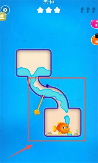 在场景里拖动石块和水草能够改变水流的走向,点击气泡装置可以给水域增添氧气,长按闸门则能调整它的开启角度。