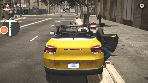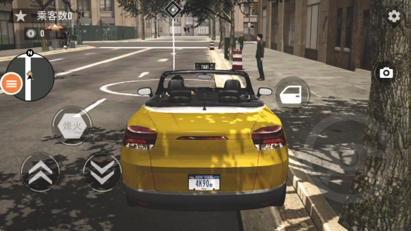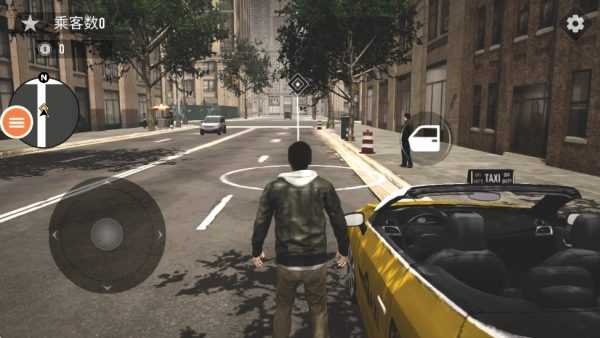 现在玩家需要操控角色移动到出租车旁边,就像下面图片展示的那样,点击画面右侧的车门按钮就能上车了。