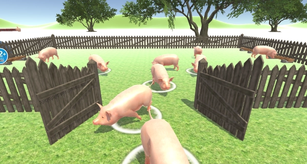 猪猪把猪圈门打开了,你需要将它们全部给抓回来。
