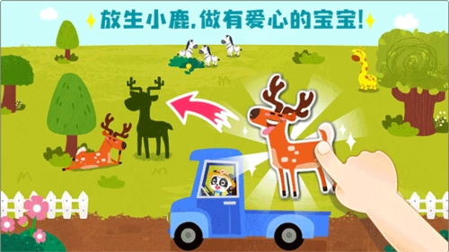 经过宝宝小医生的救援和急救治疗,动物园里的小动物们都恢复了健康。现在宝宝开着卡车,把这些动物送回大自然吧。我们一定要保护自然,爱护动物!
