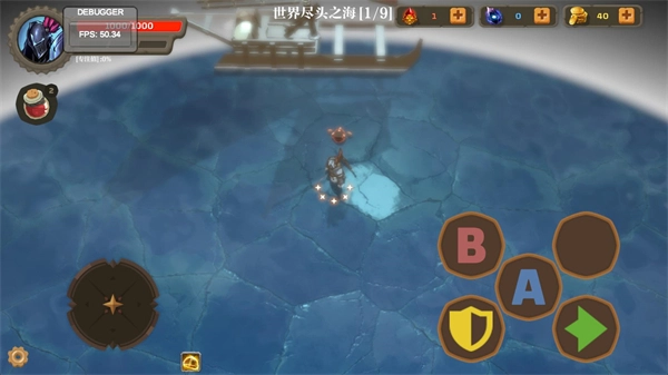 游戏开始后,左侧区域用于操控角色移动,右侧的A、B键对应两种不同的攻击手段,护盾功能可实现格挡,绿色箭头则代表闪避操作。