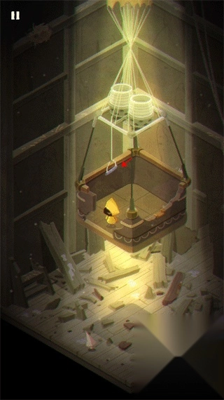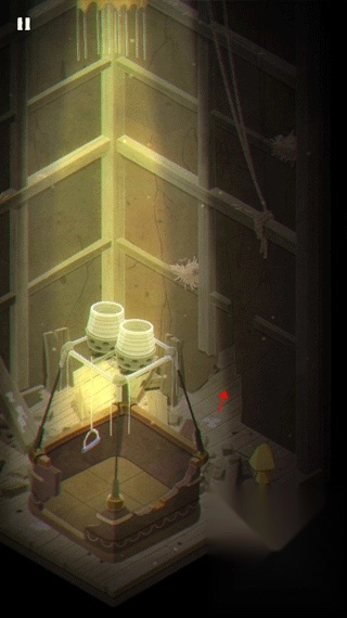 游戏的开场是摩诺用门抵御外界的攻击,第一关中,摩诺身处一个类似篮子的空间里,得按住上方的拉杆才能让自己落到地面。
