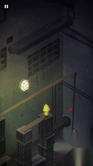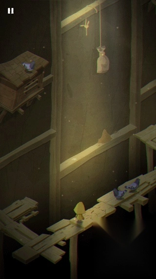 第一关会遇到大量鸽子,经过此处时要留意这块板子,当快要掉下去的时候,迅速点击屏幕让摩诺移动到安全的位置上。