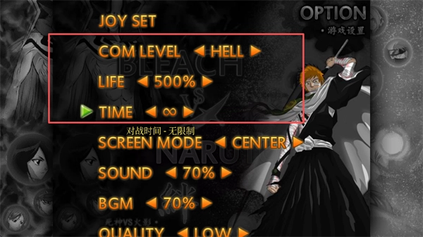 要是觉得游戏里的打斗场面不够刺激,不妨点击屏幕下方的“OPTION”选项。