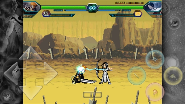 在战斗界面中,游戏左侧区域用于操控角色移动,还能与技能键组合释放其他技能;屏幕右侧则分布着普通攻击、远程攻击、跳跃和闪避的按键。
