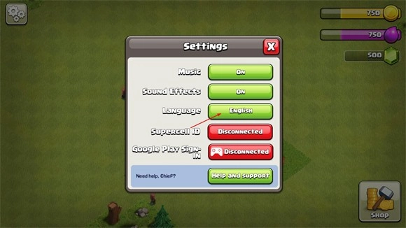 进入游戏完成新手教程后,点击右下角的齿轮图标,接着点击supercell ID区域显示的“已断开”选项。