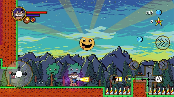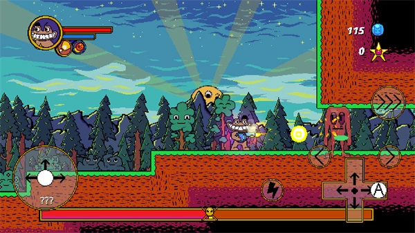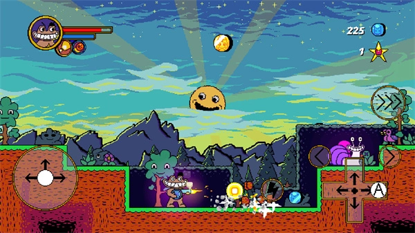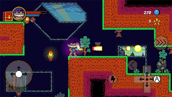 接着就能开启关卡挑战了,左边的按键用于操控角色自由移动,右边的A键负责持续射击,并且可以调整射击方向。