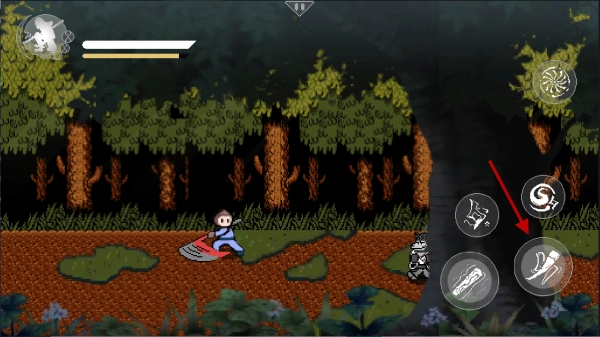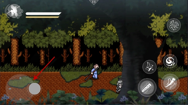 中间的按键是跳跃键,按下跳跃后再按普攻,角色会直接向前挥棍劈击。