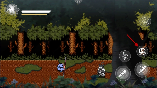 右侧箭头所指的是普通攻击,猴子会向前挥舞棍子发起攻击。
