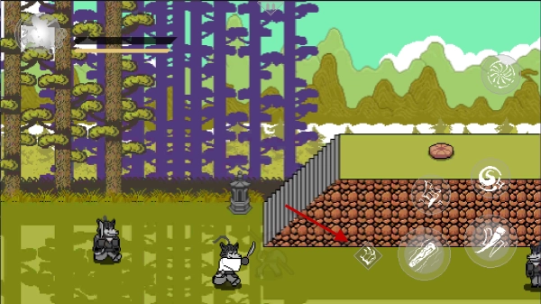 右上角的道具是花棍,它能够用来抵御远程攻击,不过使用时会消耗气力。