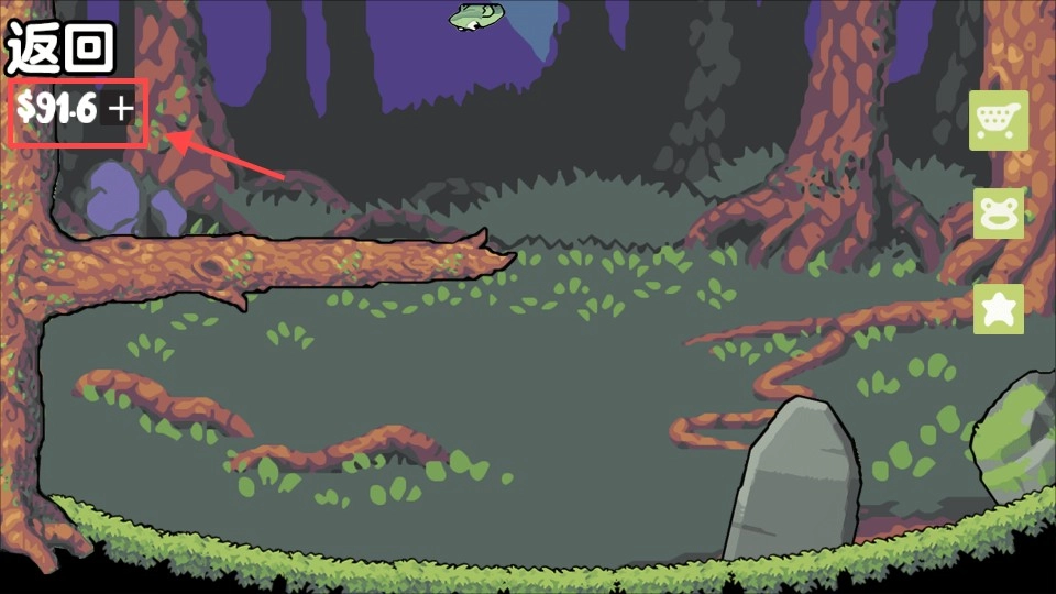 左上角会显示玩家拥有的金币数量,这些金币可以用来购买青蛙,也能用于提升养殖场的容量。