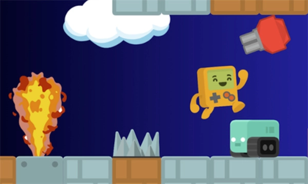 进入关卡后,里面的陷阱会随机分布,像齿轮、火焰之类的都不能碰到,还得持续跳跃前进。