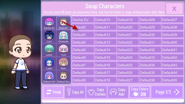 要是得从头开始创建角色设定,第一步先点击左边箭头所指的按钮,接着挑选一个空的位置,如此便能获得一个初始角色了。