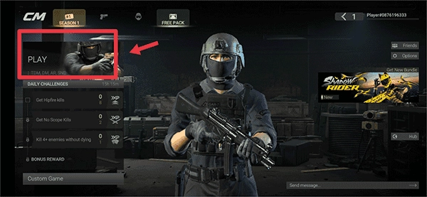 首先启动游戏,注意该游戏需要借助加速器才能运行;进入游戏主界面后,点击“play”按钮开始匹配其他玩家。