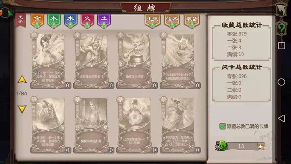 在这款游戏里,卡牌被划分为生灵牌、法术牌与装备牌三大类。其中,生灵牌涵盖鬼吏、佛门、妖怪等不同类别;法术牌则细分为普通、连锁和触发三种类型;装备牌主要包括生灵装备和主角装备两类。