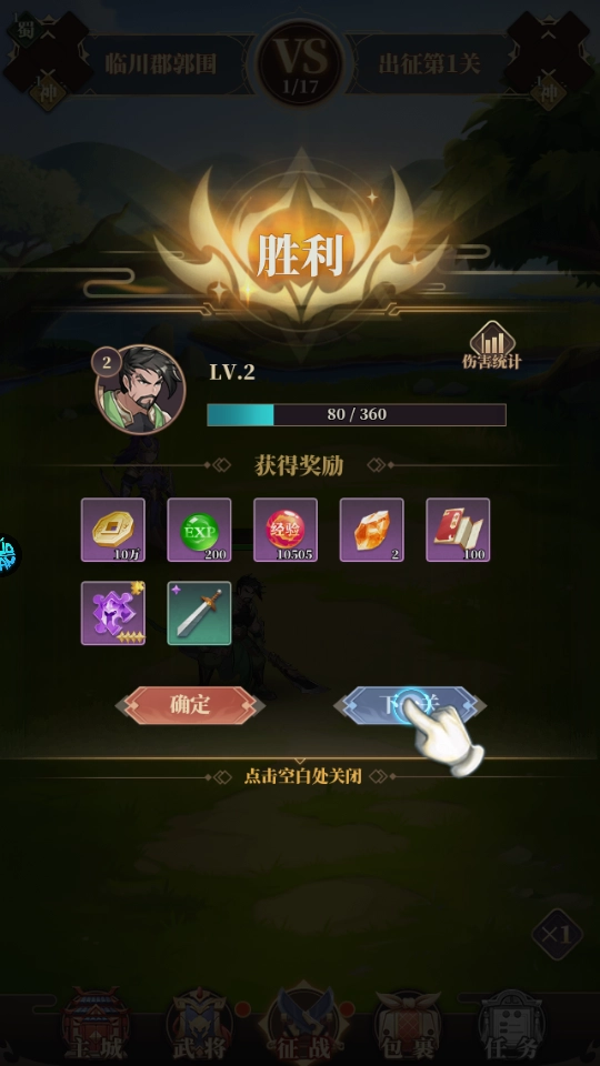 然后开启挑战,完成关卡后还能获取铜钱、经验、装备之类的奖励;