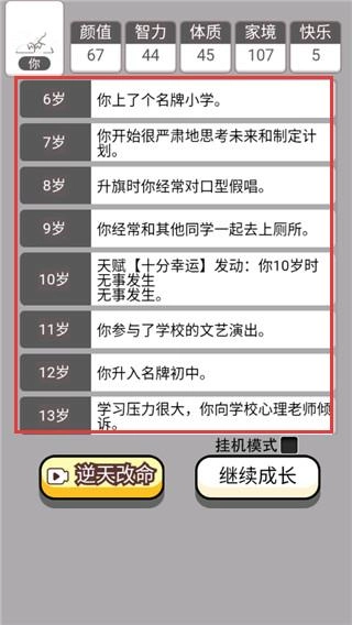 可以查看不同年龄段的人生事件记录,点击【继续成长】按钮,就能解锁角色后续发展的新事件与选择。
