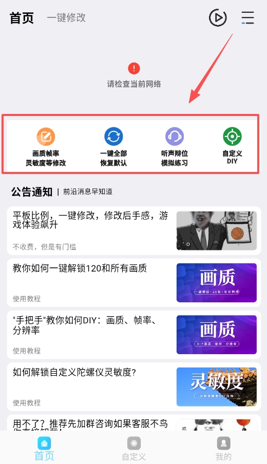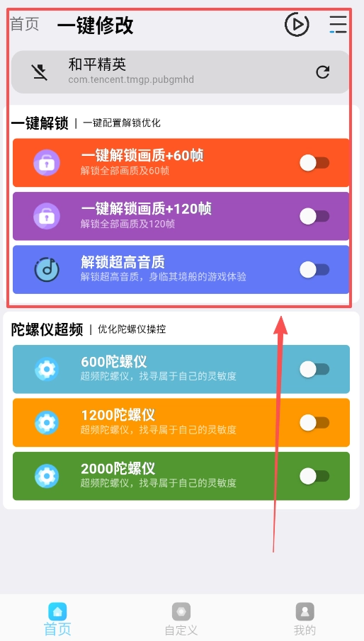 初次使用的时候,不妨先从首页的“一键修改”功能开始尝试,这里提供了一些预设方案,像一键解锁所有画质选项以及120帧帧率这样的功能都包含在内。
