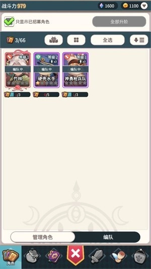 2、点击底部的角色按钮,可查看已拥有的角色信息,还能对角色进行升级与进阶操作,以此提升其实力。