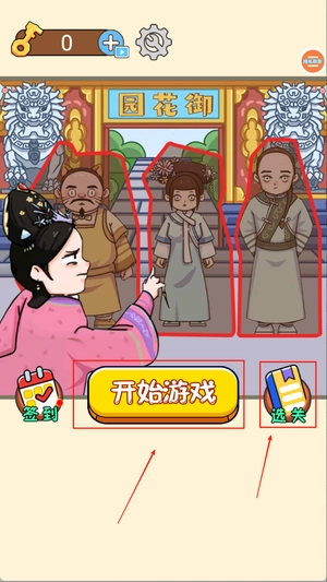 4、协助宫中人物在石头后方摆好姿势以躲避贵妃的搜寻,通过不断切换动作进行尝试,找到能完美隐身的最佳姿势。