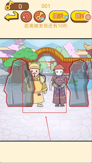 2、在找茬关卡里,玩家要依据关卡要求来操作,这一关的任务是把两个人藏好,不能让他们被发现。