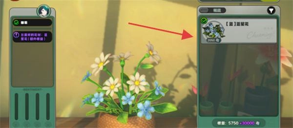 1、把盆栽花卉更换成右侧箭头所指的【蓝】蓝星花,对植物配置进行更新。