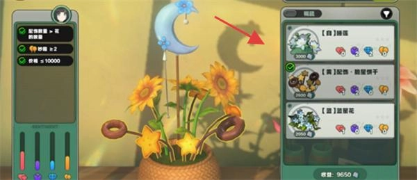 3、场景应对策略:社交场合前可快速组合出易获好感的盆栽(见图3);日常养护时则替换为具备高存储能力的盆栽;装饰方面需着重关注造型设计(如月亮、玫瑰样式),并借助属性机制来适配不同场景的具体需求。