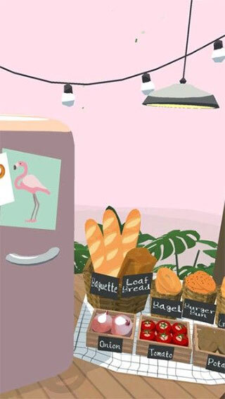 转动手机时,游戏里的视角也会同步转动,很容易就能找到冰箱、食材和菜板这类物品。之所以称它为没有烦恼的厨房,是因为冰箱里的食物不需要自己去采购,用完之后冰箱中的食物会自动补充,而且里面的食材无论放多久都不会变质,让人特别省心。